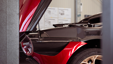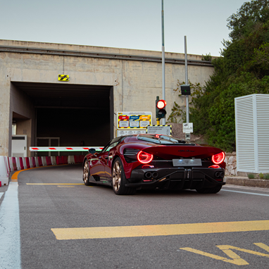 Em Balocco, o primeiro teste foi efetuado a uma velocidade moderada, para avaliar a precisão do sistema de direção e a resposta do sistema de travagem, bem como o comportamento caraterístico garantido pelo sistema composto pelo chassis de alumínio em forma de H, o monocoque em fibra de carbono e a configuração refinada da suspensão.