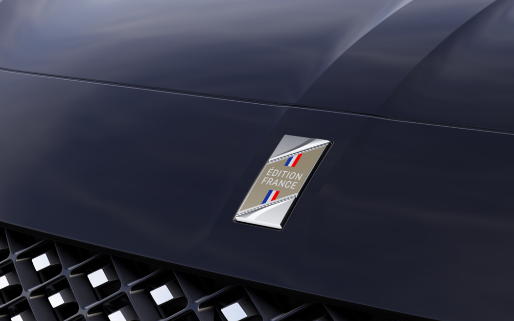 Elementos de personalização exclusivos: dupla linha dourada sob os vidros laterais, centros de jante dourados, emblema do capot ÉDITION FRANCE com a bandeira “Azul-Branco-Vermelho” sobre fundo dourado e monograma “3” dourado afixado na porta da bagageira