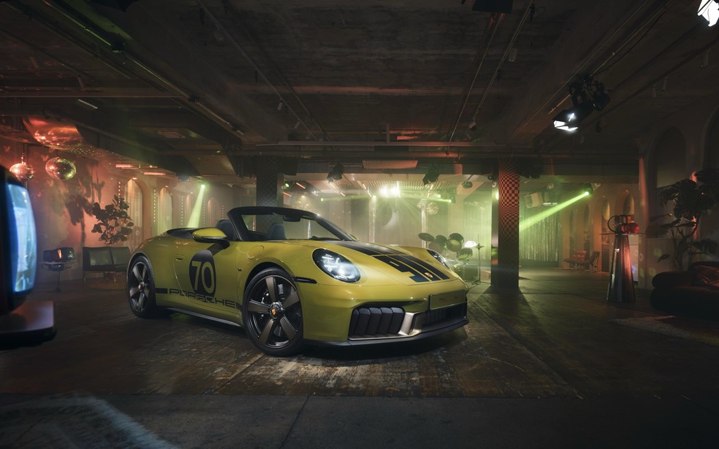 Uma cor exclusiva, o Azeitona Neo, grafismos decorativos de inspiração histórica e o lendário padrão Pasha no interior: a Porsche apresenta o 911 Spirit 70, um cabriolet limitado a 1.500 unidades que personifica a essência dos anos 1970 e o início dos anos 1980. Criado no âmbito da estratégia Heritage Design, esta versão de coleção é o terceiro modelo 911 em que a Porsche revive uma época com a ajuda de elementos de design iconográficos de veículos anteriores. O 911 Spirit 70 tem como base técnica o atual 911 Carrera GTS Cabriolet com performance híbrida eficiente.