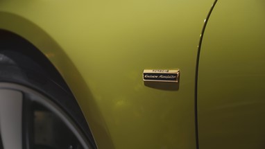 Outros pormenores diferenciadores incluem a inscrição Porsche em dourado e a designação do modelo na traseira. As letras adquirem o seu extraordinário brilho graças à superfície galvanizada a ouro.