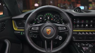 O painel de instrumentos combina um design histórico com tecnologia de ponta. O ecrã de alta resolução de 12,65 polegadas tem ponteiros em Branco e linhas de escala em formato analógico. Os números em Verde recordam o lendário Porsche 356 e a designação do modelo está integrada no conta-rotações digital. Os ponteiros em Branco e os números em Verde também caracterizam a versão especial do cronómetro Sport Chrono.