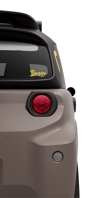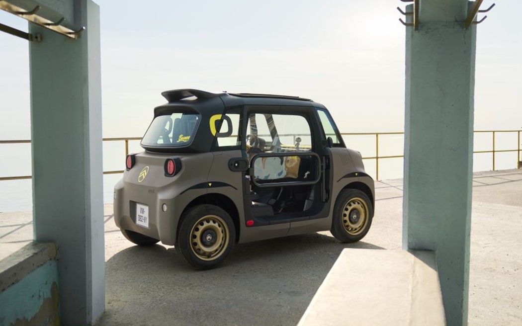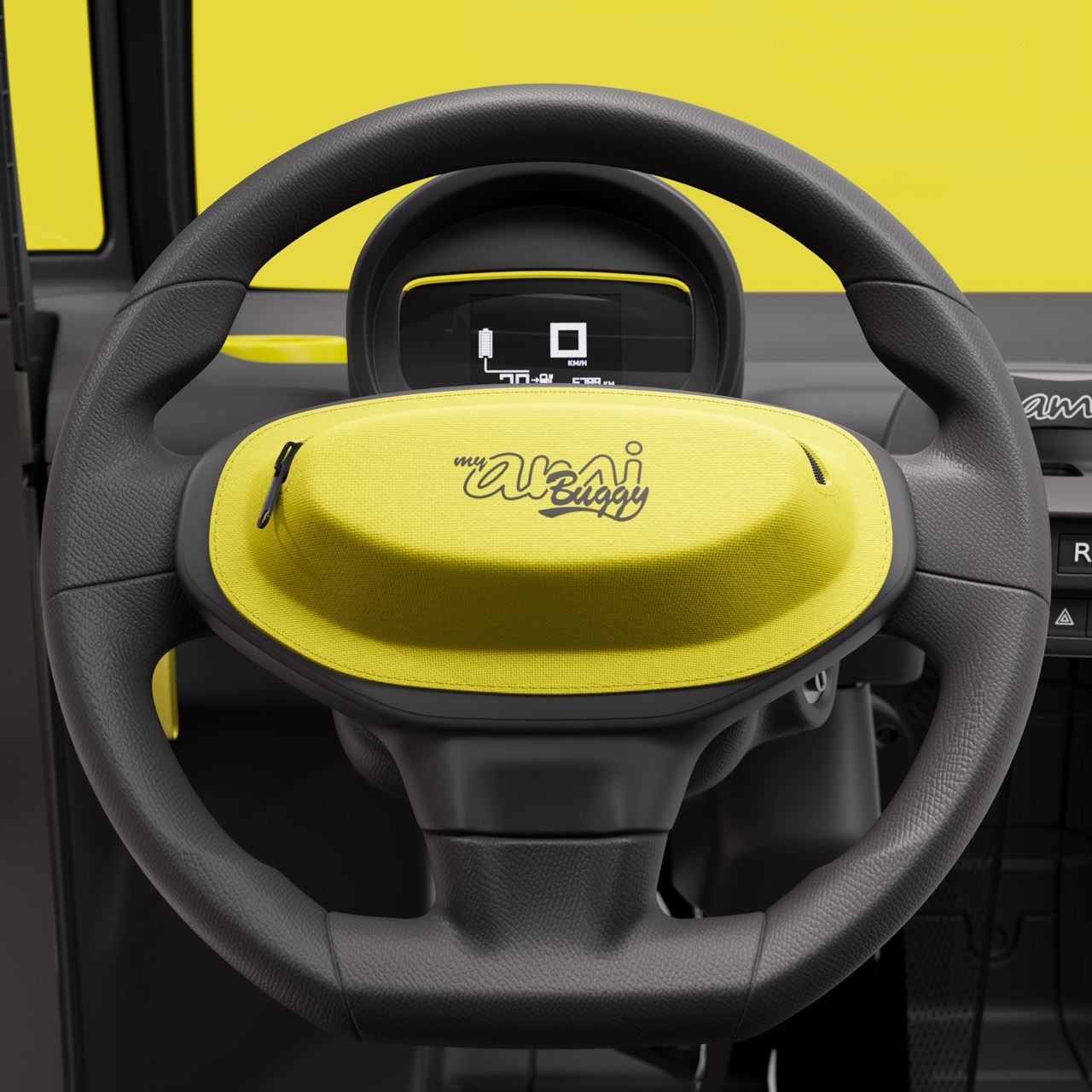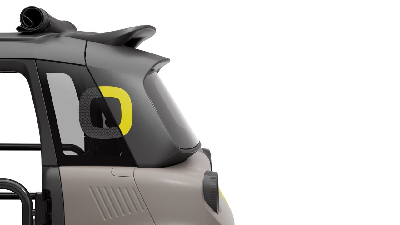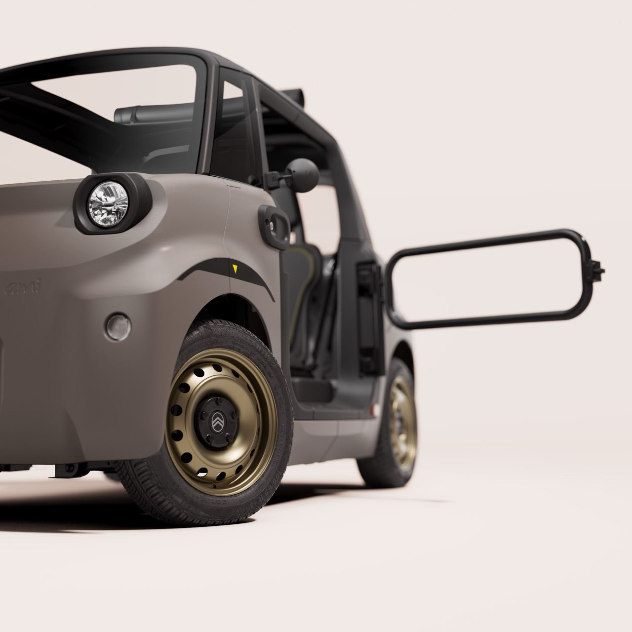 Dando-lhe ainda mais carácter, o Ami Buggy tem um spoiler preto na traseira, num toque desportivo. As jantes de aço de 14" têm um acabamento dourado e são complementadas por um centro de roda preto, adornado com um chevron. O logótipo, por sua vez, recebeu uma nova tonalidade amarela.
