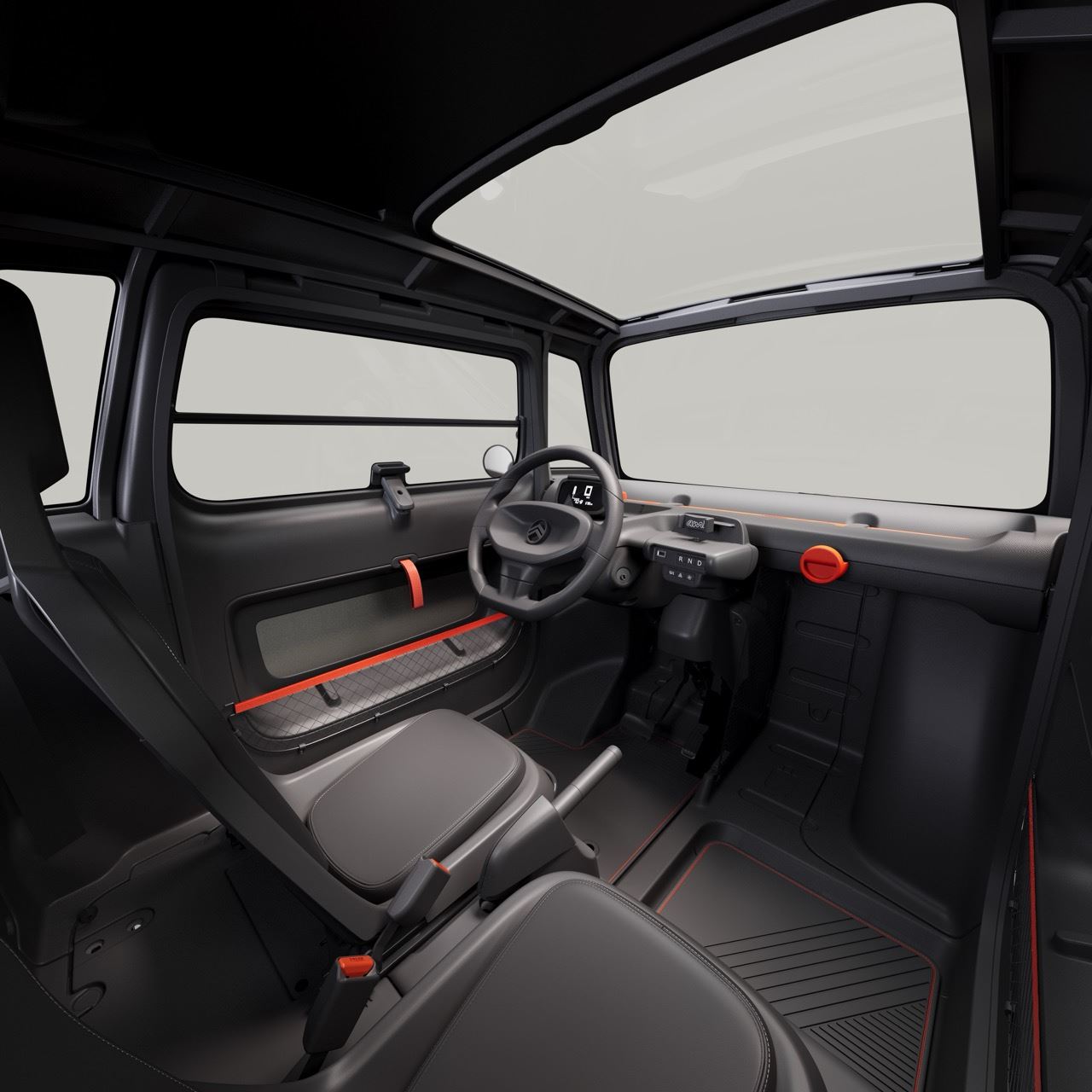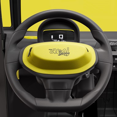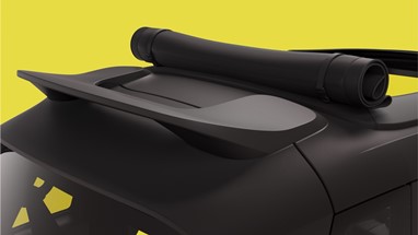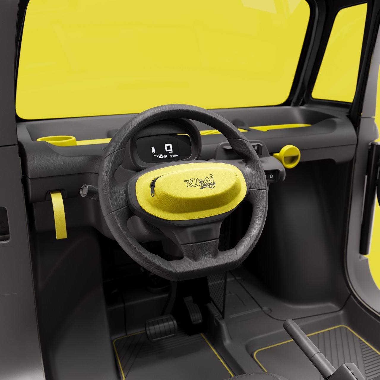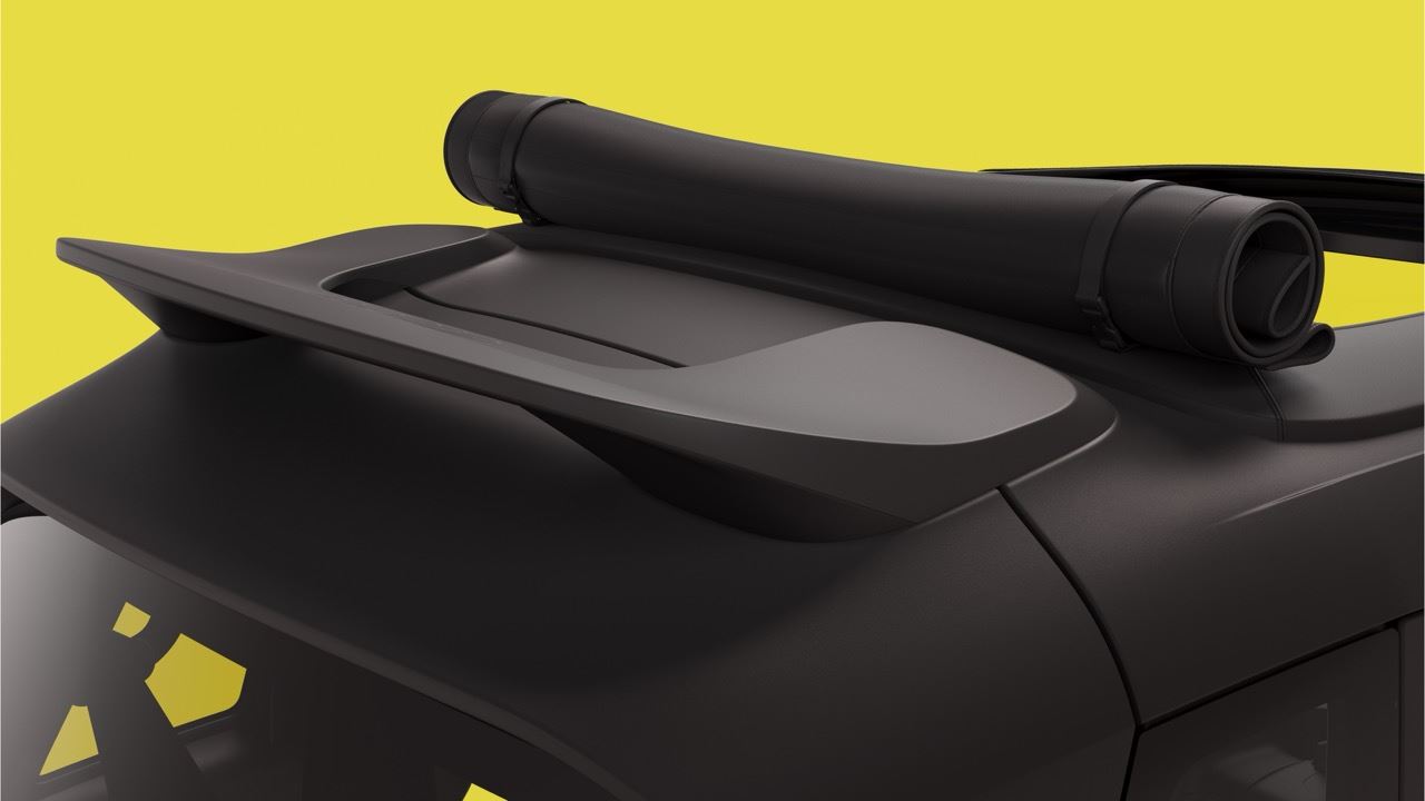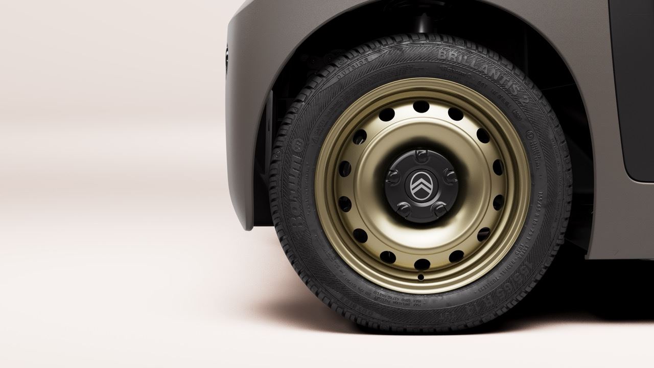 Dando-lhe ainda mais carácter, o Ami Buggy tem um spoiler preto na traseira, num toque desportivo. As jantes de aço de 14" têm um acabamento dourado e são complementadas por um centro de roda preto, adornado com um chevron. O logótipo, por sua vez, recebeu uma nova tonalidade amarela.