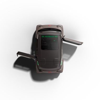 Uma vez a bordo, basta retirar as rodas da cadeira de rodas, que podem ser guardadas na zona dos pés e fixadas com uma correia especialmente concebida para o efeito. A cadeira de rodas dobrada pode ser colocada no banco do passageiro e fixada com um cinto de segurança adicional. Se o utilizador estiver acompanhado, pode também ser fornecida uma solução de arrumação através da adição de um porta-bagagens opcional, libertando espaço a bordo.