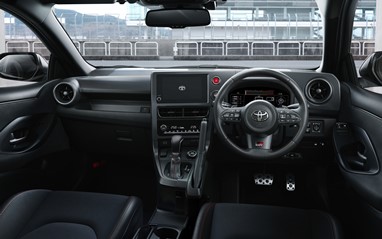 O desempenho da Transmissão Automática Direta GAZOO Racing de oito velocidades, que proporciona mudanças rápidas de acordo com as normas da competição, foi ainda mais optimizado através de melhorias detalhadas no controlo da seleção de velocidades, principalmente durante a condução desportiva. Para melhorar a experiência de condução com dois pedais, o apoio para os pés também foi alargado.