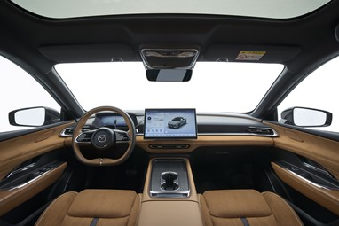Se o seu design exterior exibe uma reinterpretação do design Kodo - A Alma do Movimento, nos interiores o o Mazda6e inspira-se no conceito japonês de ma, que enfatiza a simplicidade e a organização dos espaços, subjacente a um ambiente de características premium.