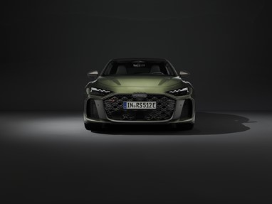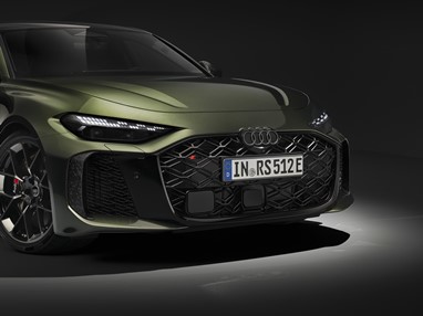 O Audi RS 5 oferece desempenho de competição para a estrada. Com cerca de nove centímetros adicionais de largura face ao A5 base em ambas as extremidades e cavas das rodas alargadas, apresenta uma postura musculada. A grelha Singleframe tridimensional com efeito de favo de mel e Air Curtains para controlo do fluxo de ar dominam a frente. Na traseira, o difusor aerodinâmico e as saídas de escape ovais com acabamento mate do sistema de escape RS Sport garantem uma assinatura desportiva. De dia e de noite, os faróis LED Matrix escurecidos com assinatura luminosa digital em padrão de bandeira axadrezada reforçam a presença decidida do modelo em estrada.