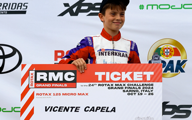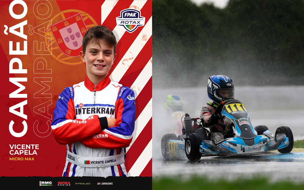 Vicente Capela está no karting de competição há apenas três temporadas, mas desde cedo mostrou o seu talento natural para a velocidade. A rápida evolução do piloto bejense culminou esta época, com a conquista do título de campeão de Portugal Rotax da categoria Micro-Max, uma das mais disputadas do panorama nacional e que terminou no passado fim de semana, no Kartódromo Internacional de Braga.