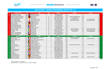 A desistência de última hora da Lamborghini que, ao que parece, não concordou com a obrigatoriedade de participação de dois carros por construtor na classe Hypercar, ou não teve meios para cumprir com essa exigência, a impossibilidade (crê-se que, igualmente, por falta de meios) da Vanwall-ByKolles cumprir com a mesma regra, e ainda o ‘desaparecimento’ da Isotta-Fraschini, condicionaram a composição da lista de inscritos permanente para a temporada de 2025 do Mundial de Endurance (WEC - World Endurance Championship).