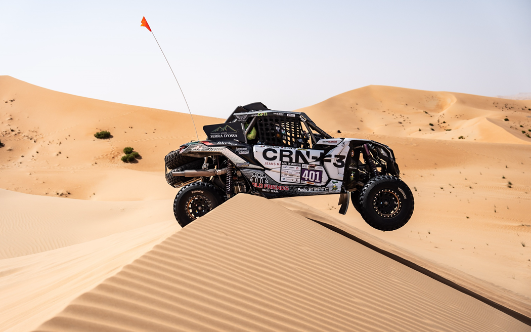Depois de, na terceira etapa, ter conquistado uma importante vitória para o Campeonato do Mundo de Rally Raid, a dupla do Old Friends Rally Team voltou a estar em destaque na jornada de hoje do Abu Dhabi Desert Challenge onde, na competição SSV, voltou a ocupar uma posição de pódio. Naquela que foi a segunda parte da etapa maratona, Alexandre Pinto e Bernardo Oliveira conquistaram preciosos pontos que lhes permitem reforçar de novo a sua posição de liderança no W2RC (World Rally Raid Championship), tanto entre os pilotos como na classificação destinada aos navegadores.