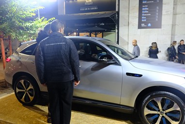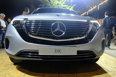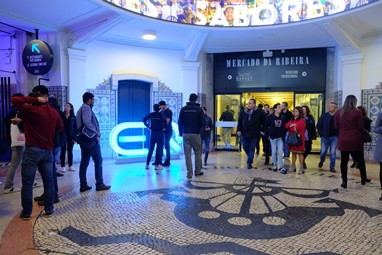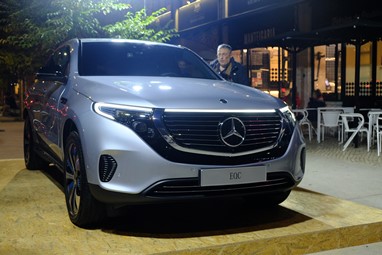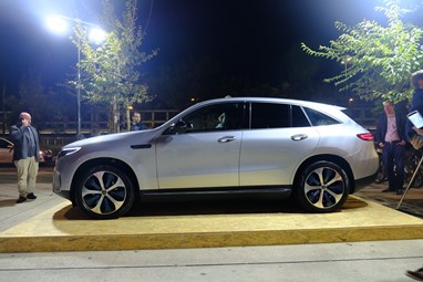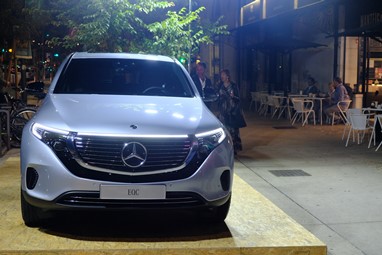 Foi bem no centro da movida da capital, com o mercado da Ribeira eletrificado com a presença de muitos clientes e um exemplar do EQC bem à vista de todos. Promete.