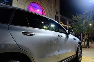 Mercedes elétrica na noite de Lisboa