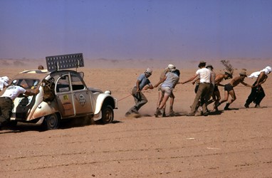 Além disso, o 2 CV percorreu estradas de todo o mundo através de vários Raids - como o Raid Paris-Kaboul-Paris de 16.500 km em 1970, o Raid Paris-Persépolis de 13.500 km em 1971 e o Raid África de Abidjan a Tunis de 8.000 km em 1973, todos eles organizados pela Citroën.