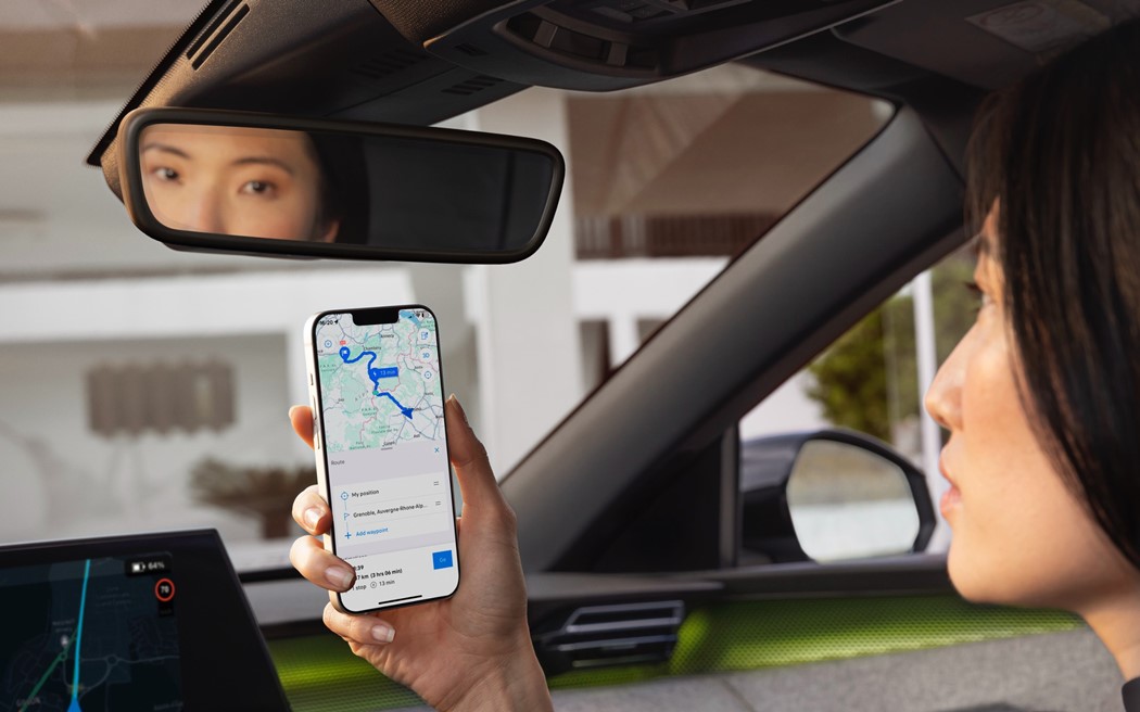 Acessível diretamente a partir do veículo — esteja ele equipado ou não com navegação integrada — através de um smartphone/iPhone e de uma conta MyPEUGEOT, a aplicação e-ROUTES by Free2move Charge funciona em modo espelho no sistema PEUGEOT i-Connect®.