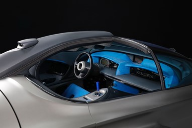 El interior seguia a mesma inspiração aeronáutica. Concebido como um cockpit, diferenciava claramente o espaço destinado ao condutor – um autêntico posto de comando – do passageiro, concebido com um maior conforto em mente. Os bancos revestidos a Alcantara Azul Celeste, a iluminação ambiente por fibra ótica, e os ecrãs em vidro criavam uma atmosfera vanguardista. Entre as suas inovações estava a instrumentação digital Magneti Marelli derivada da Fórmula 1, um sistema de navegação, câmaras de visão traseira, em substituição dos retrovisores, e um moderno sistema de som.